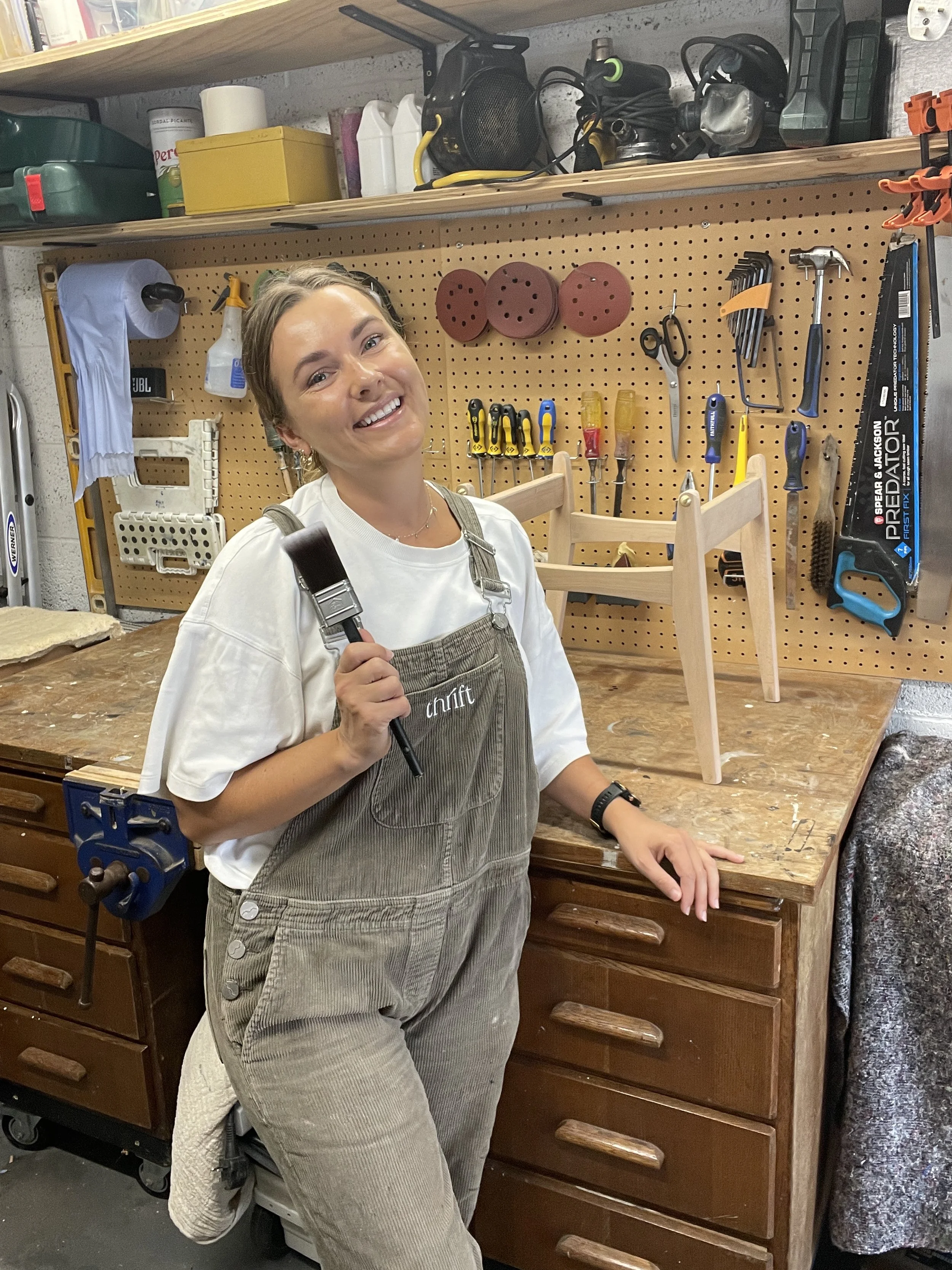 Your piece is lovingly prepped, repaired, sanded and refinished in the Thrift workshop.